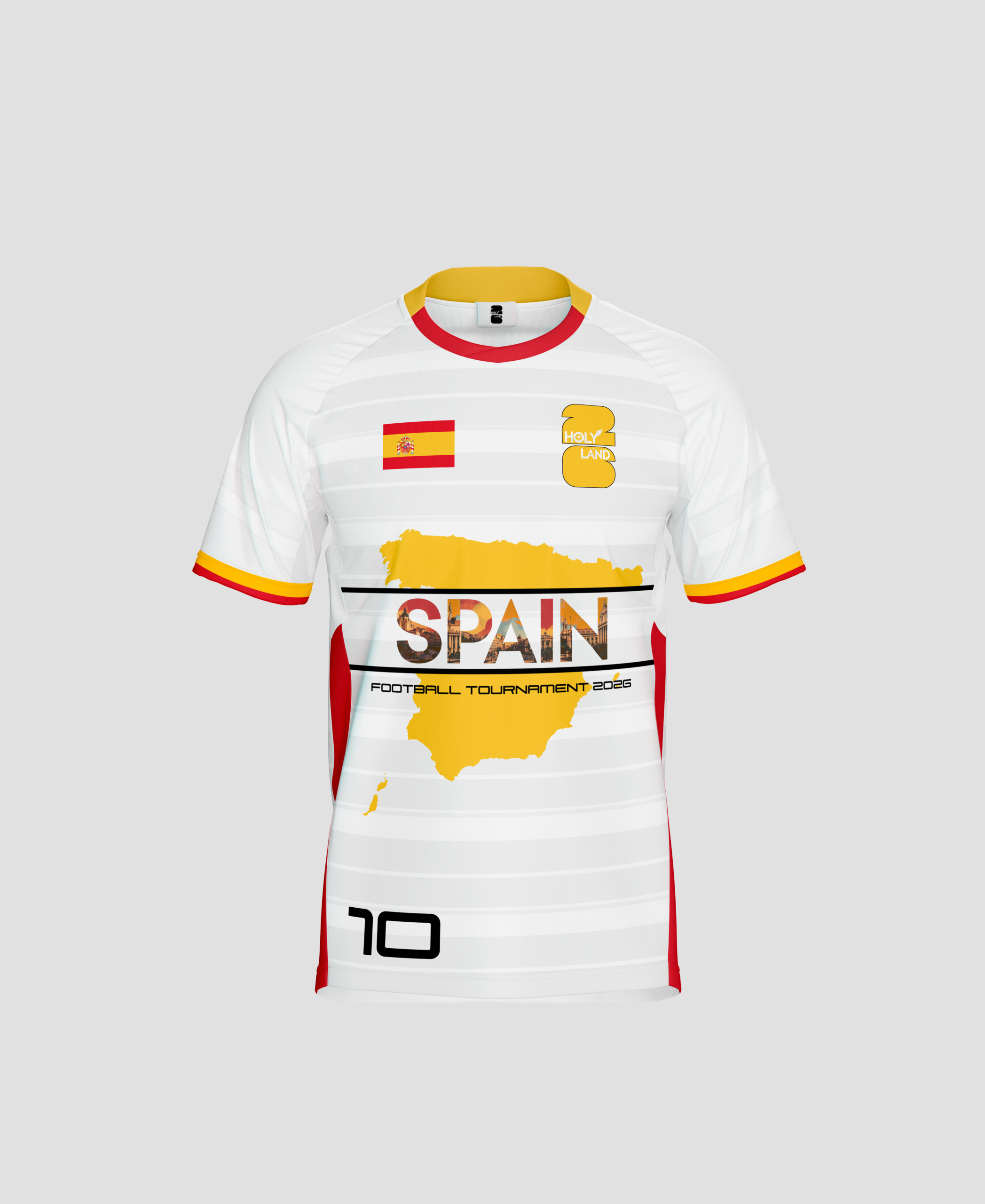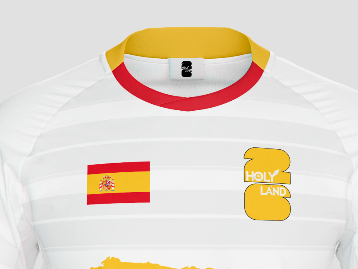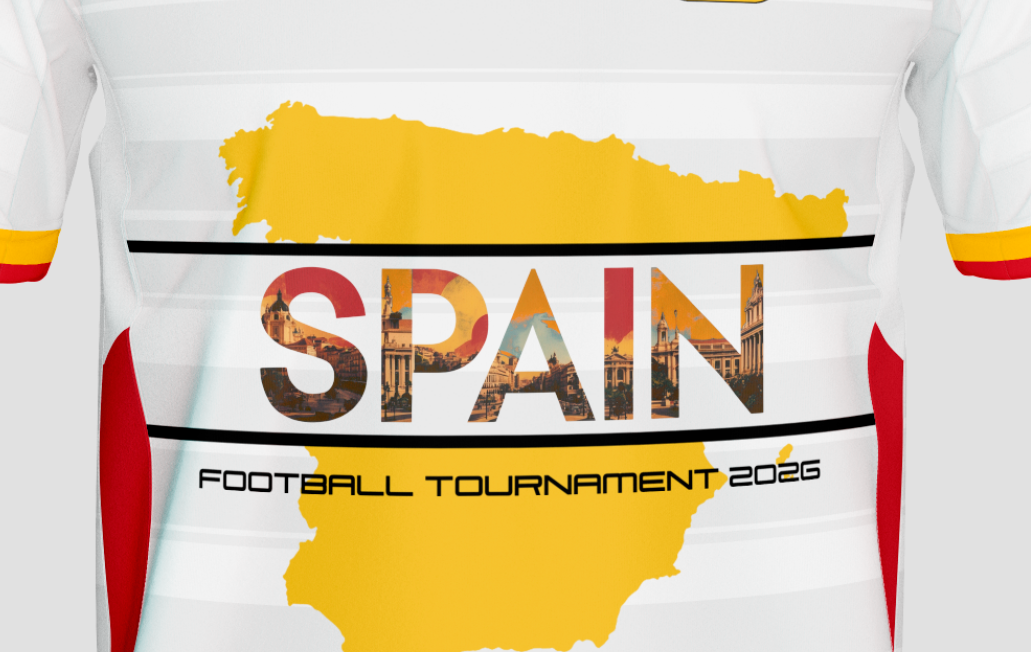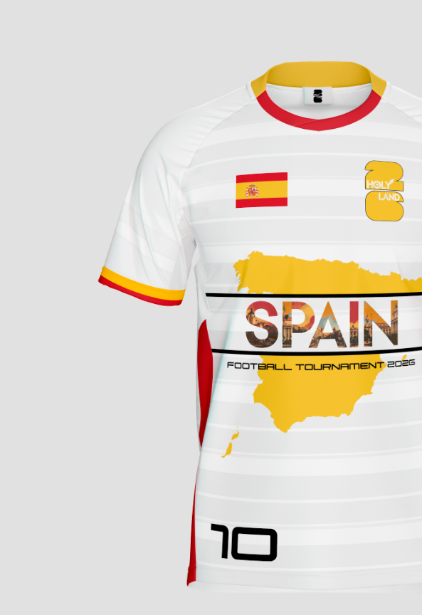 The Spain jersey reflects technical dominance and tactical intelligence. On the front, SPAIN appears with a background inspired by Madrid, the heart of Spanish football power.