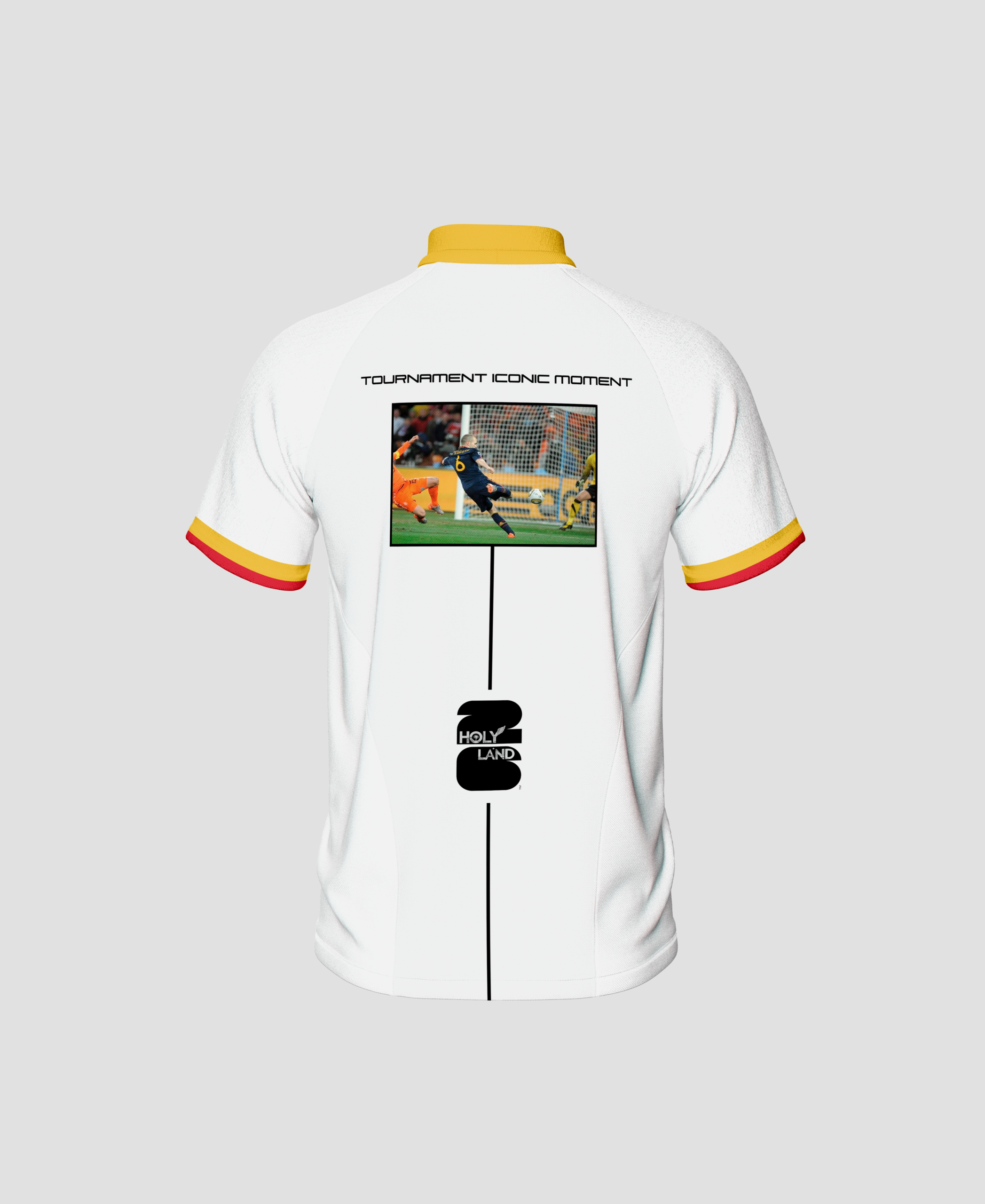 On the back, the jersey immortalizes Andrés Iniesta’s goal in the 2010 World Cup final against the Netherlands, the defining moment that delivered Spain’s first World Cup title and marked a historic era in football.